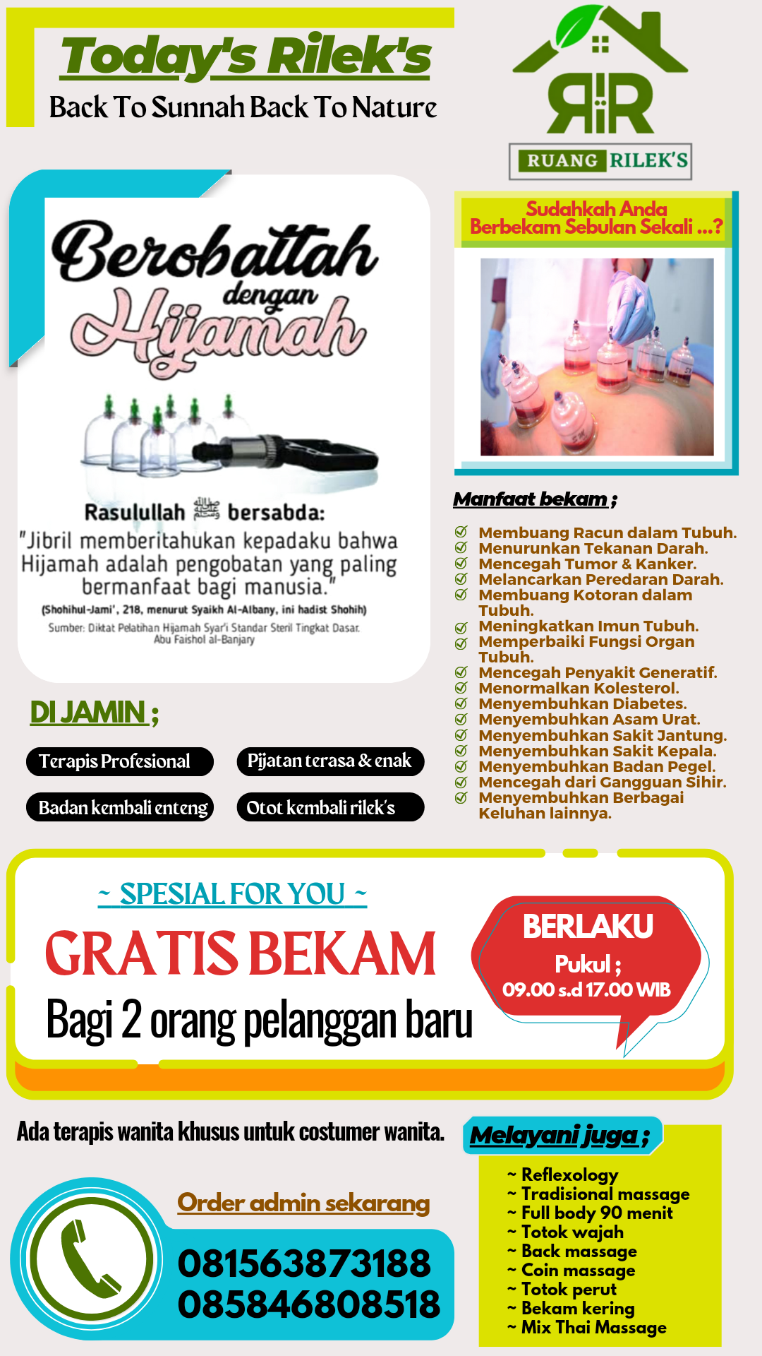 Terapis pria di layani terapis pria dan khusus untuk wanita di layani terapis wanita ya β¦.